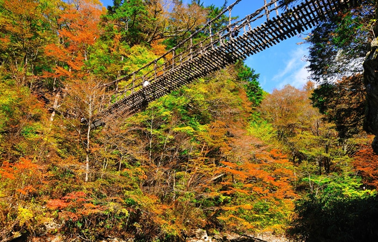 秘境感のあるかずら橋周辺では、紅葉と渓谷美を同時に楽しめます。